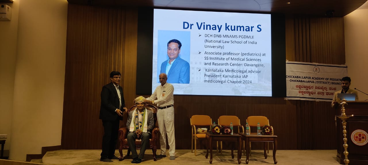 Dr. Vinaykumar S is a doctor with deep knowledge in both medicine and law. He holds degrees in MBBS, DCH, DNB, MNAMS, and serves as a Professor of Paediatrics.